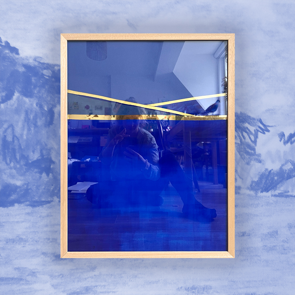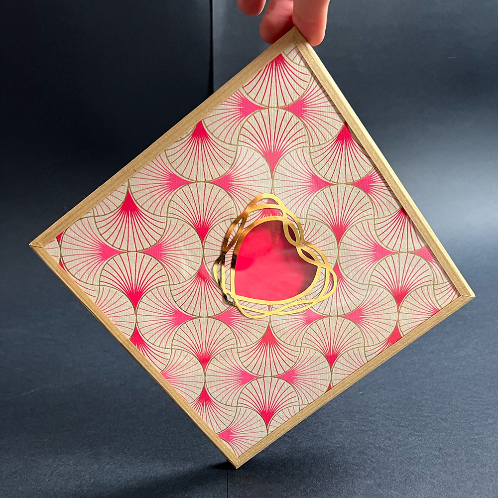 Historiquement appelé « verre églomisé », il consiste à poser de véritables feuilles d’or – ou autre métal précieux – sur une surface vitrée et à isoler le motif que l’on souhaite garder.