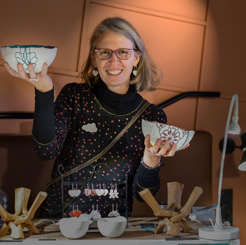 Nathalie Siat Céramiste travaille la porcelaine tout en douceur, humour et poésie.