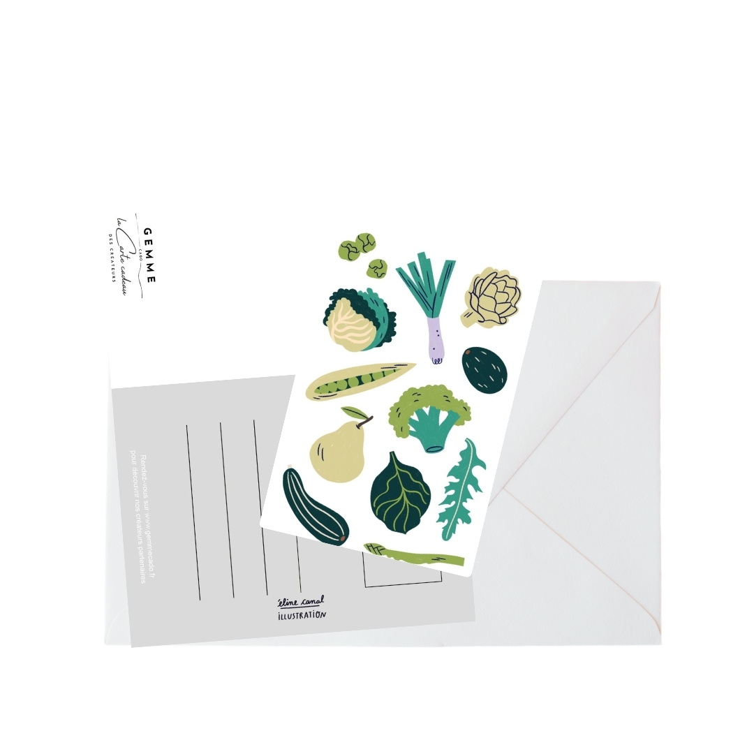 Chaque carte-cadeau GEMMEcado est composée d’une carte-cadeau au format carte de visite et d’une carte postale au format A6. Les deux cartes vont toujours de pair : elles sont vendues ensemble et contiennent la même illustration. La carte-cadeau pourra être glissée dans le portefeuille pour l’avoir à portée de main en cas de coup de cœur chez l’un de nos partenaires. Quant à la carte postale, elle pourra être réutilisée comme décoration d’intérieur ou autre selon l’envie.